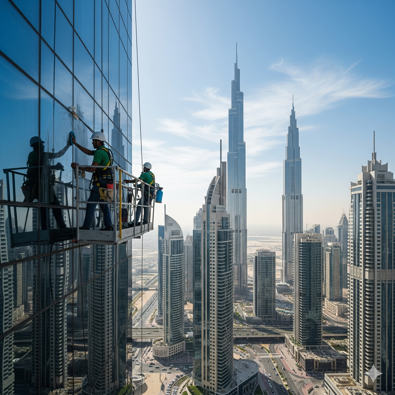 High-Rise Exterior Cleaning: Professional facade and window cleaning for high-rise buildings, ensuring a spotless, streak-free shine with maximum safety. Pressure Washing Service: Removes dirt, dust, and grime from walls, tiles, and exterior surfaces to restore the original look, Specialized cleaning of glass, cladding using eco-friendly methods.